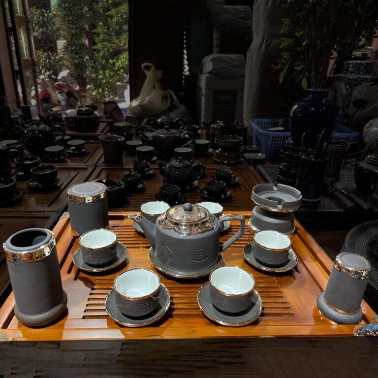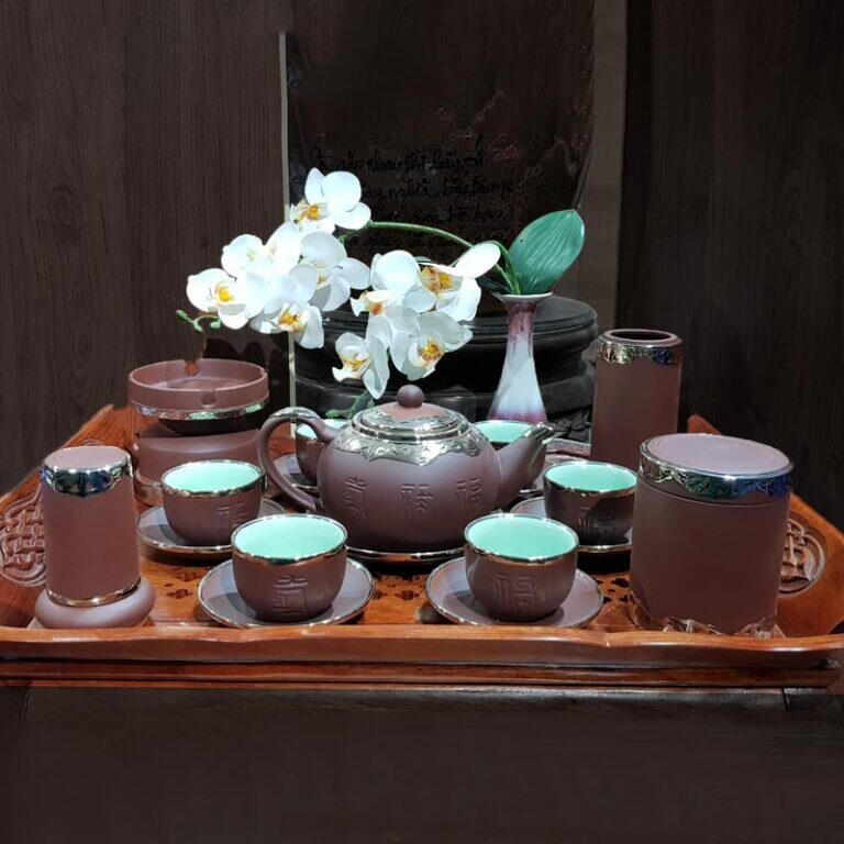 Bộ Ấm Trà Bát Tràng Tích PLT Xanh Bọc Đồng Bạch Full Phụ Kiện là một dụng cụ pha trà nổi tiếng trong giới thưởng trà. Người tiêu dùng trà sẽ có thể trải nghiệm trọn vẹn hương vị của từng tách trà khi lựa chọn đúng bộ ấm chén cao cấp mang thương hiệu. Để giúp những người yêu trà đạt được hương vị trà đậm đà nhất, Siêu thị mekoong luôn nỗ lực không ngừng để cung cấp cho họ những bình trà zisha tốt nhất.